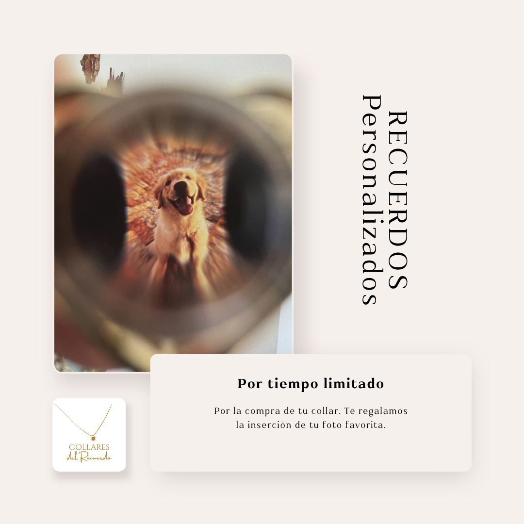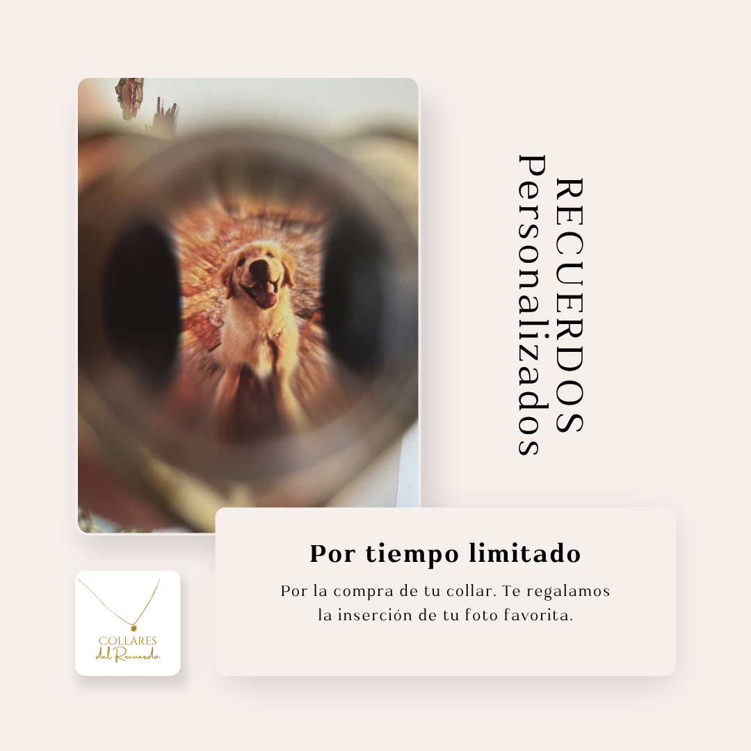 Con la compra de tu collar, te regalamos la inserción de tu foto favorita, lista para ver dentro del lente.