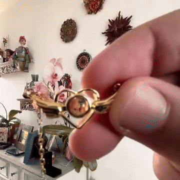 Es un collar personalizado que oculta una imagen dentro de su piedra central. Al acercarlo a la cámara del teléfono o mirarlo contra la luz, podrás ver la foto proyectada en miniatura dentro del lente. Es un detalle único, emocional y elegante que lleva un recuerdo siempre contigo.